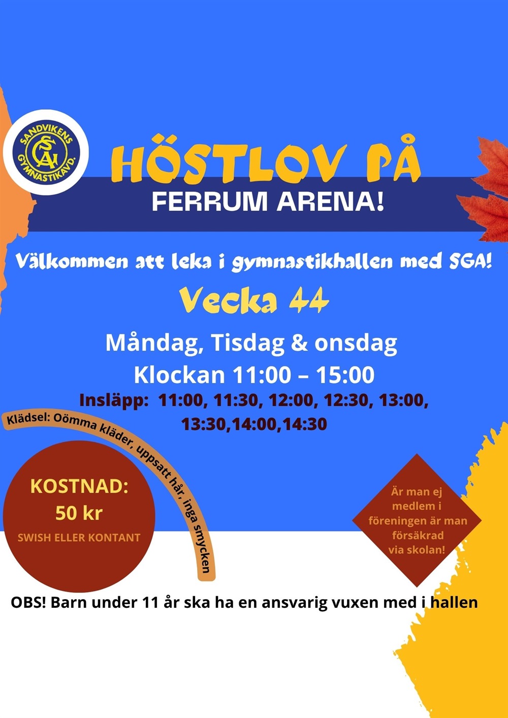 Ferrum Gymnastik Onsdag 15 okt, 16:30-18:00